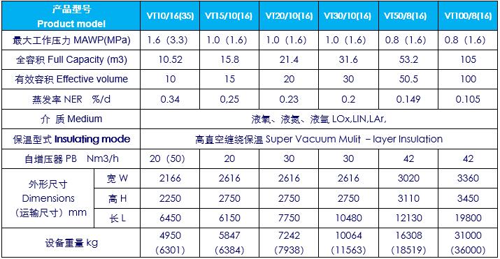 存貯介質(zhì)Medium::液態(tài)氧、液態(tài)氮、液態(tài)氬、液態(tài)二氧化碳、液化天然氣LOx,LIN,LAr,LCO2,LNG, 液態(tài)乙烯LC2H4